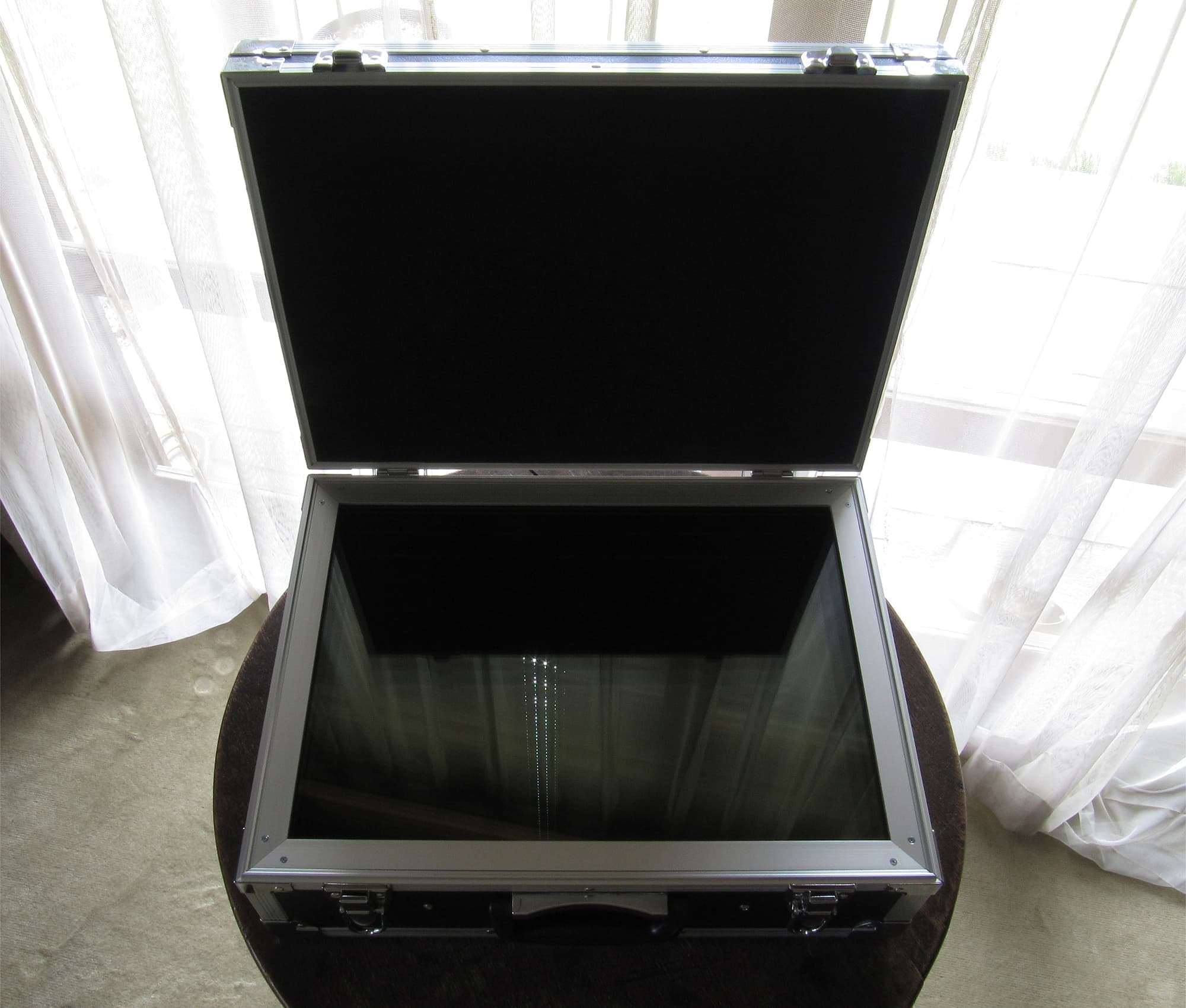 ※ 鏡面に現れる光は1秒毎にゆっくりとフェードイン/フェードアウトをしながらインフィニティーの形に沿って移動している。電源は100V~240Vに対応し、世界中どこでも鑑賞することが可能。