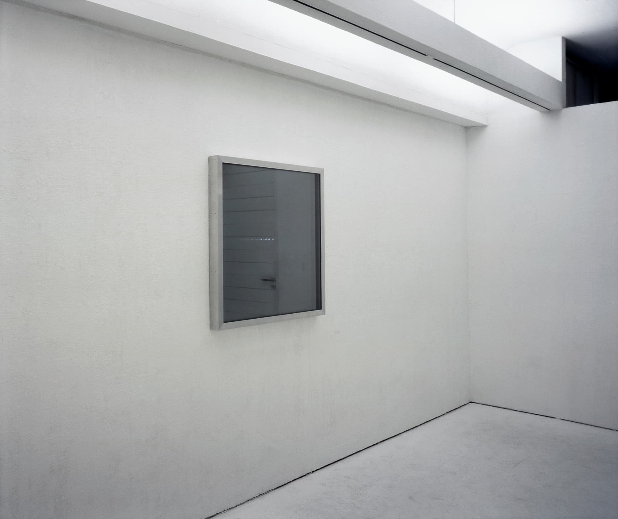 < Untitled > 2001 mirror, two-way mirror, light, aluminum frame 900×900×75mm Photos : Masaru Yanagiba " Untitled " 2001 Moris Gallery Tokyo