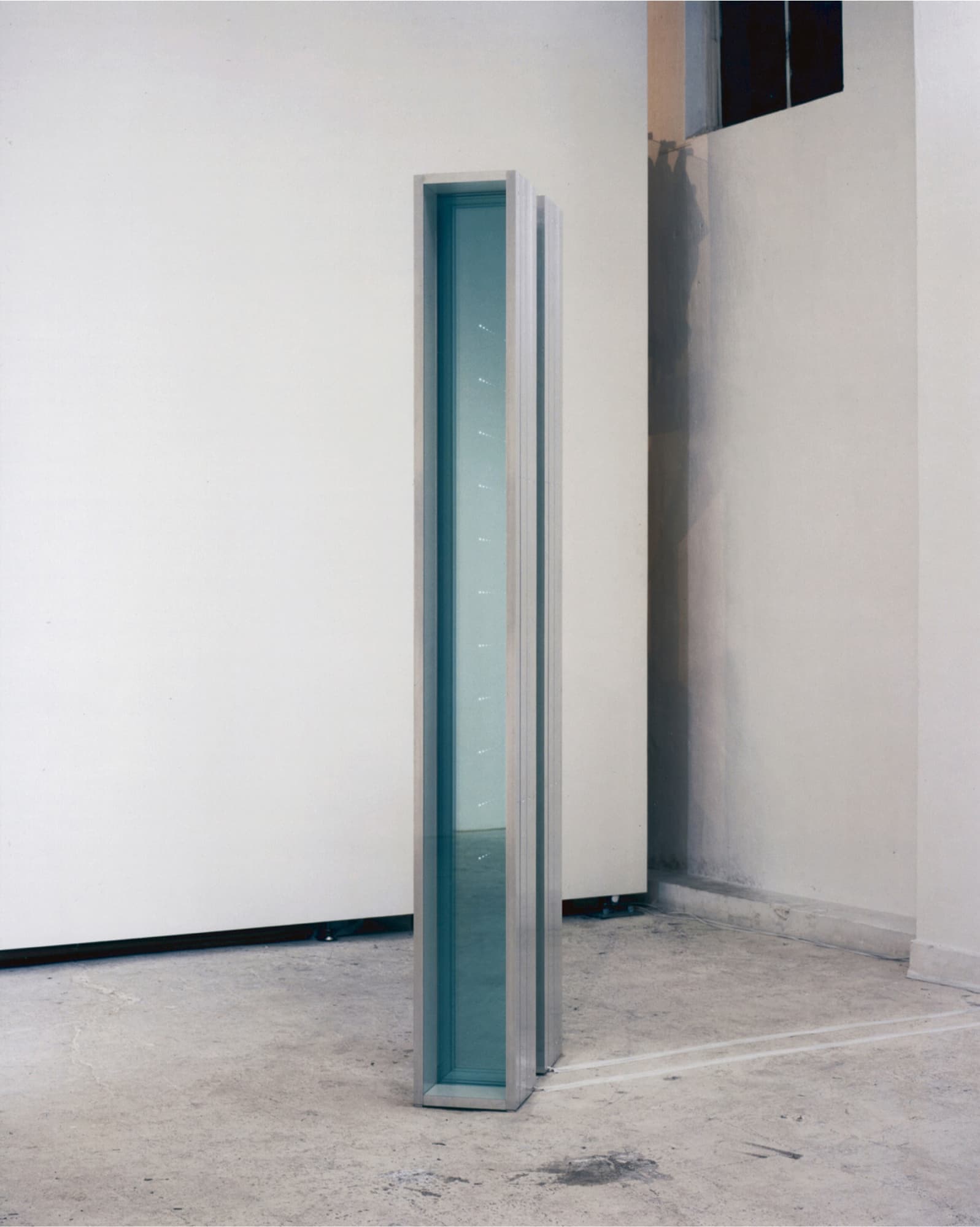 < Untitled > 2001 mirror, two-way mirror, light, aluminum frame 2300×260×630mm over all, each of two parts Photos : Masaru Yanagiba " Untitled " 2001 TandS Tokyo