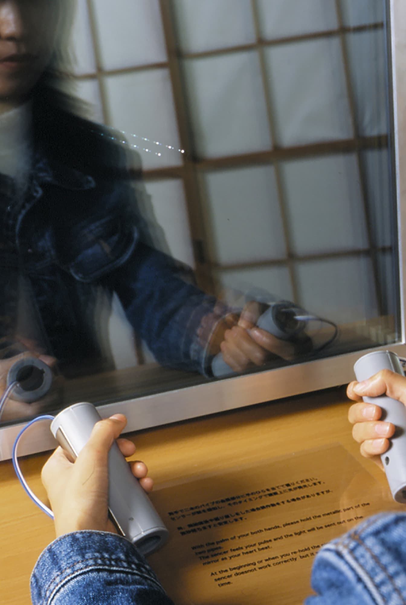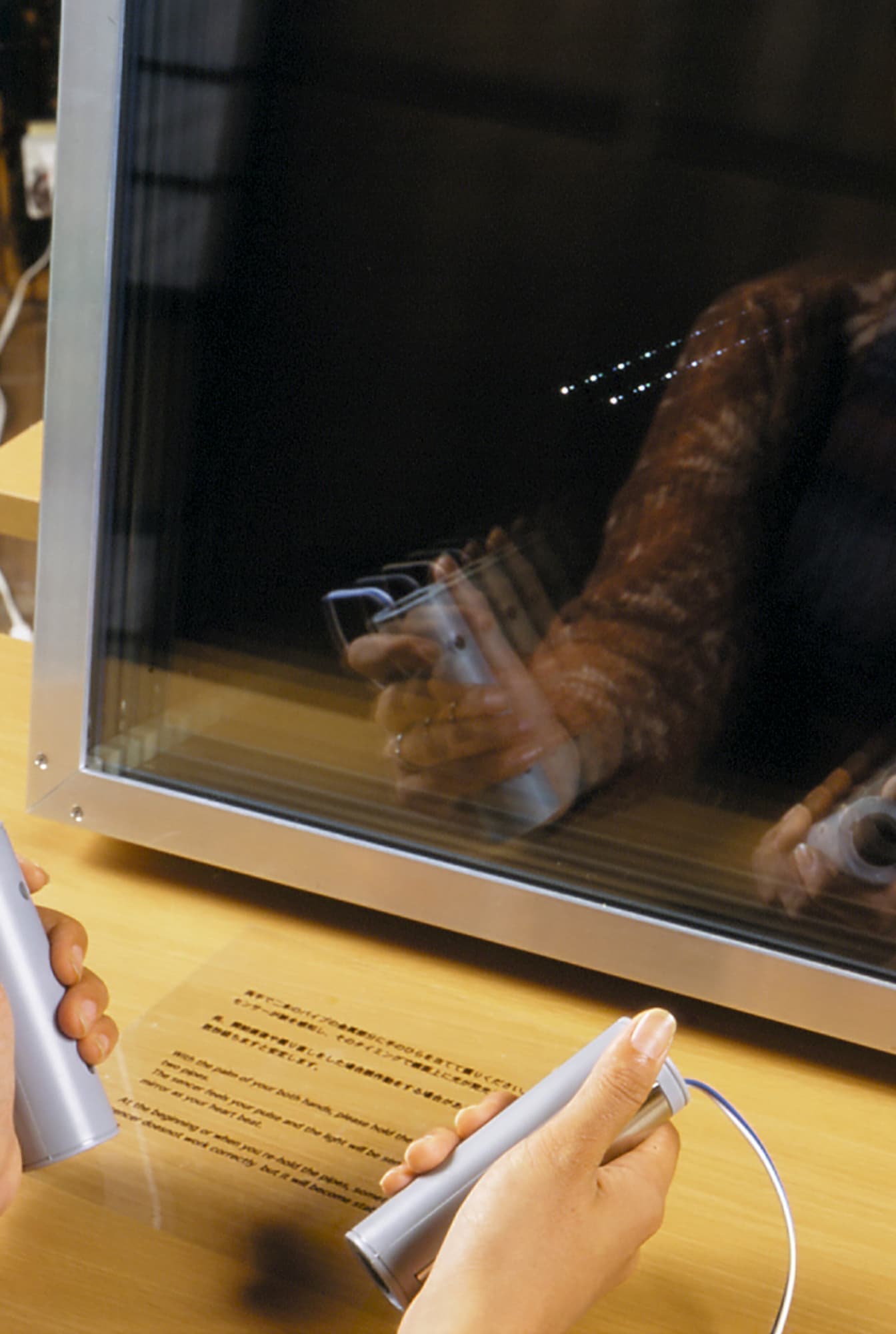 ※ 鑑賞者がセンサーを握ることで脈動を感知し、そのパルスに呼応して鏡面上に光が現れる作品。